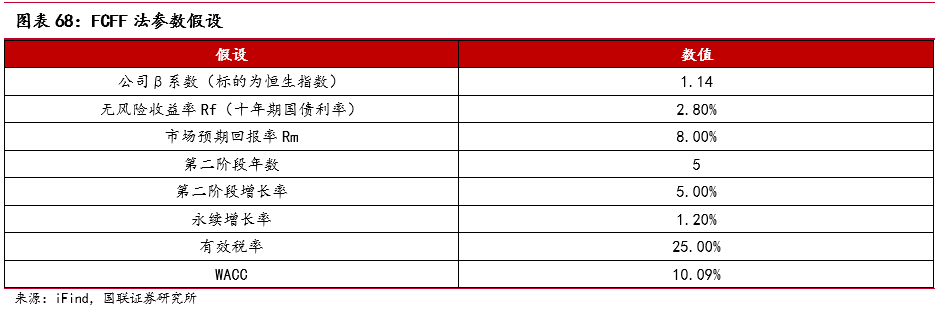 绝对估值:采用FCFF法对公司股权价值进行估算,得出每股价值为10.58元,折合11.76港元。敏感性分析显示,若折现率和永续增长率同比变化±10%,则每股价值变动范围为8.83-10.94元,折合9.82-12.17港元。(汇率采用当前即期汇率1港元=0.8993人民币)
