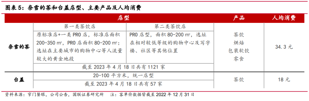 目前公司旗下运营有奈雪的茶和台盖两大子品牌,分别定位高端市场和中端市场。其中奈雪的茶共有两大店型,一类为标准茶饮店,包括奈雪的礼物、奈雪酒馆Bla Bla Bar和奈雪梦工厂等多元化概念店,二类为奈雪PRO茶饮店。