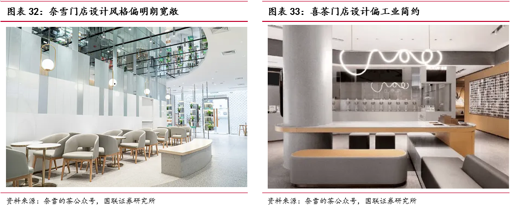 店铺设计传递品牌理念,消费者进行体验与沟通。选址:奈雪的茶茶饮店网络覆盖中国经济活跃的地区,大部分门店战略性开设于高客流量区域,如购物中心及写字楼以及居民区中心的核心位置。门店面积上,原标准店在200-350㎡,PRO店平均在120-150㎡,针对女性,强调休闲社交消费场景。装修:基调统一,突出个性。每家门店都与国内外众多设计师携手尝试不同的空间设计,从空间设计到装修用料都极为考究,突出简约、明亮、时尚的空间格调,基调统一。但各区域的门店结合城市特色,体现个性化元素。