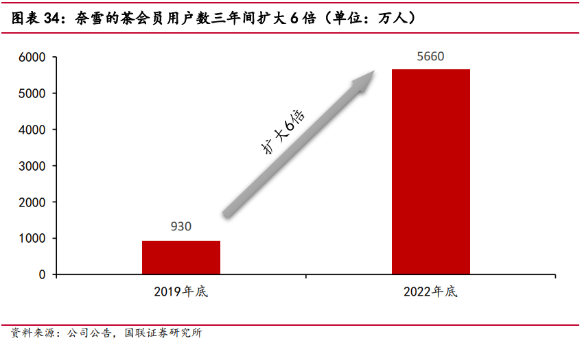 奈雪拥有庞大的会员体系,优秀管理模式持续为品牌带来流量支持。奈雪会员体系成立于2019年9月,通过会员积分、会员权益等方式增强与消费者的互动,提升消费者粘性与产品复购率。注册会员人数从19年底的930万名,迅速扩大至22年底的5660万名,月度复购率达到26.3%。