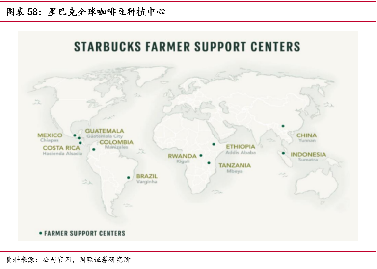 4)建立稳定、灵活的供应链体系联结上下游。星巴克在全球运营有10个咖啡豆种植支持中心,同时也对上游供应商实施评量系统,严格确保原材料的品质与供应稳定性。星巴克终端下游支持三种渠道:直销渠道、零售渠道以及特殊渠道,门店结构从高到低包括烘焙工坊及臻选品鉴馆、臻选咖啡门店、臻选体验吧、提供臻选咖啡的门店和普通门店。而在中间环节库存管理方面,星巴克也会根据销售预测数据进行结构化调整,保证订货周期不超过两个星期。