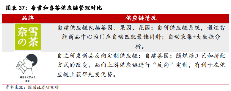 品牌是消费者认知的基础,品牌可见性可以成为隐形广告。高端茶饮品牌在品牌调性的维护上下足血本,使得其品牌势能不断扩大,在店铺点位选择、租金协商、原材料供应等多方面有控制力与议价权。供应链管理是提升经营效率、盈利水平和维持品质的关键。相较于标准化程度更高的软饮,新式茶饮供应链环节多且复杂,供应链管理决定了终端产品的品质和口感。例如,自建供应链使得公司能获得更多的承载力与应变力,同时也可以降低成本,简化供应链流通路径,进一步提高产品利润率。