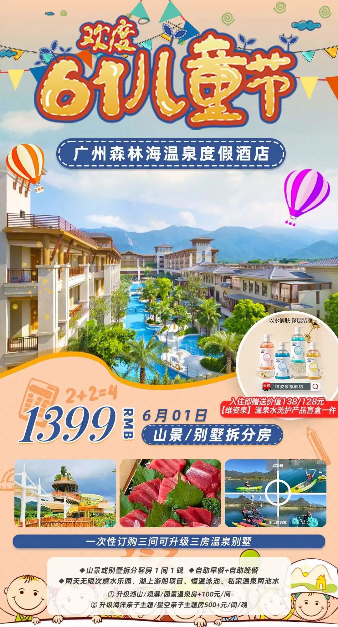 升级海洋亲子房补500 元/间(含三人套餐)。