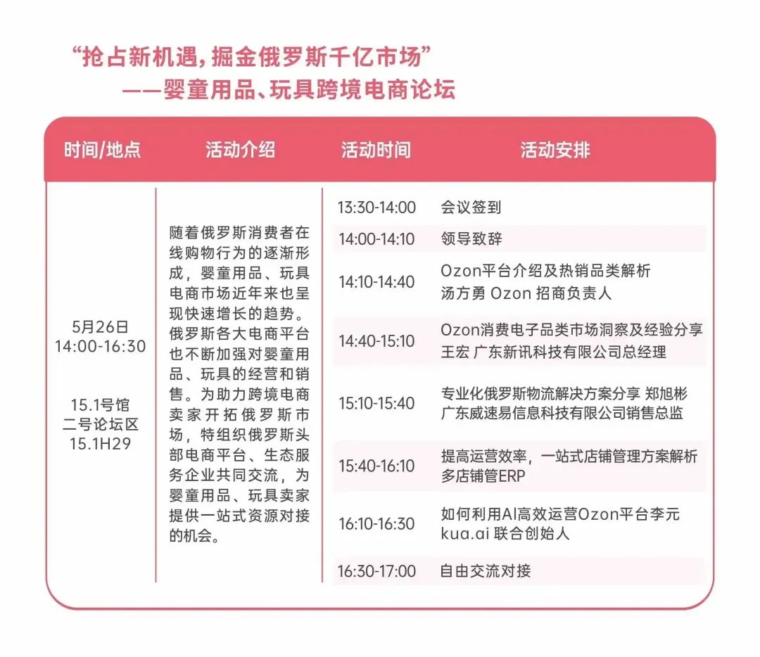 IBTE广州童博会联合业内机构,举办“精耕增长·未来母婴零售大会”、“大湾区孕婴童产品智能化发展趋势高峰论坛”、“潮玩IP授权高峰论坛”、“出海·增长 母婴商家出海新机遇大会”、“IBTE广州潮玩周”、“大湾区快乐萌宝爬行赛暨亲子嘉年华”、“新时代背景下,中小幼托决策者如何破局?——中小幼教育行业创新论坛”、“婴童用品、玩具出海(东南亚)采购对接会”、”企业跨境出海转型私享会(TIKTOK运营专场)“、“抢占新机遇,掘金俄罗斯千亿市场——婴童用品、玩具跨境电商论坛”等多场重磅同期活动赛事,为各界前来参展及观展的来宾呈现一场结合产品展示与行业交流的精彩盛宴。