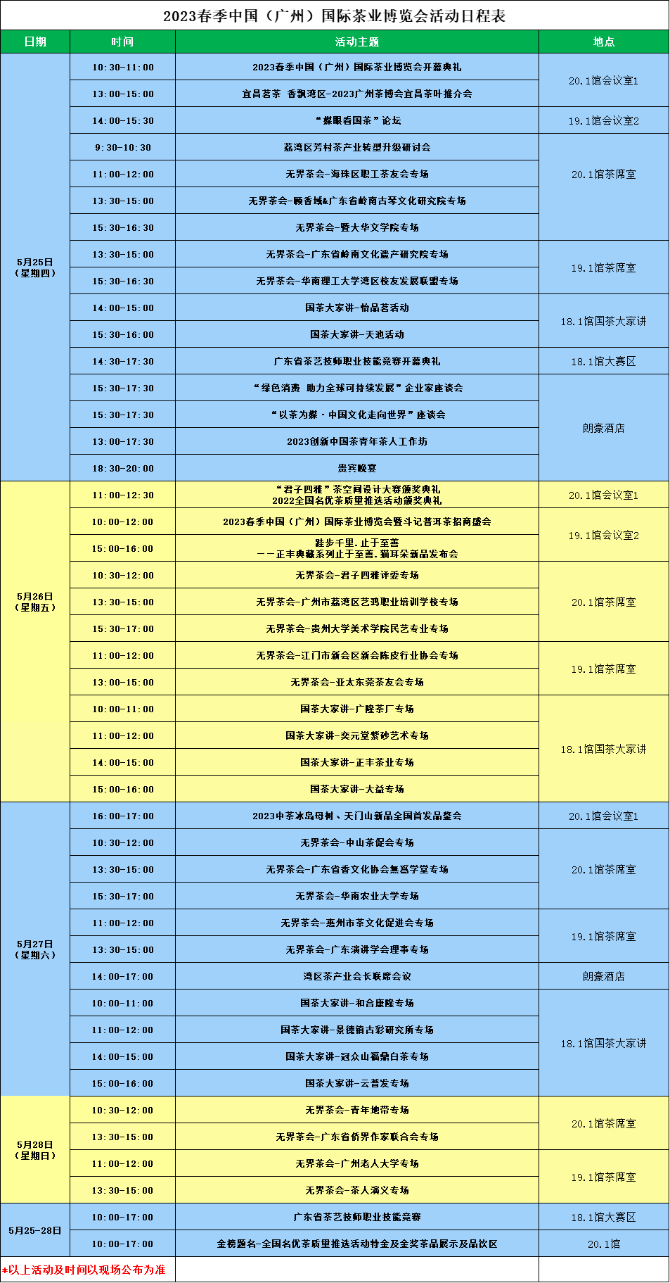 展会活动日程表