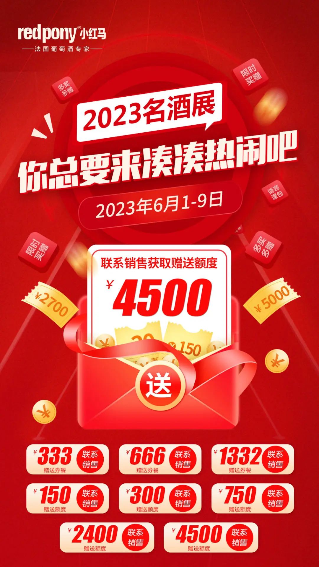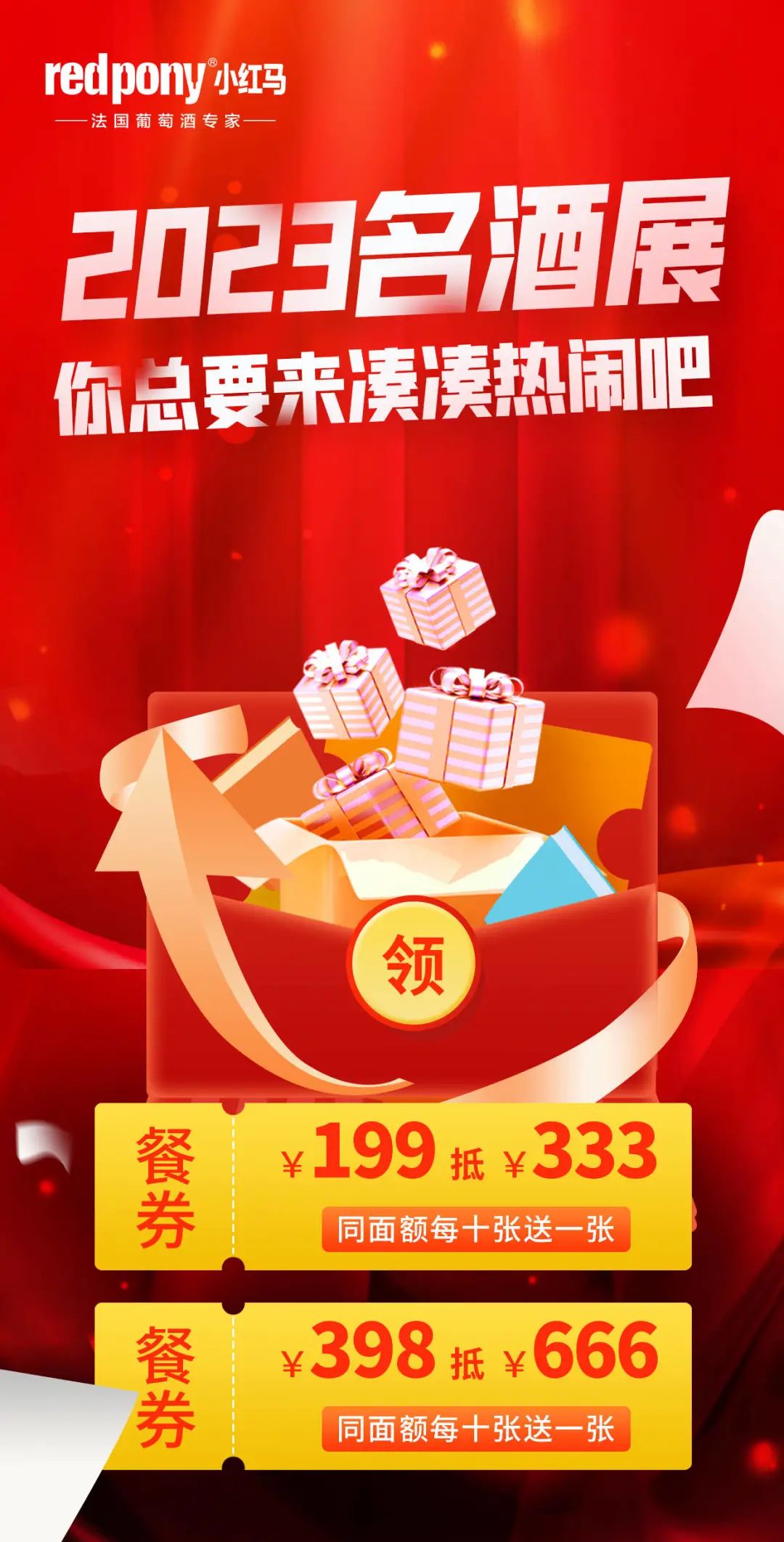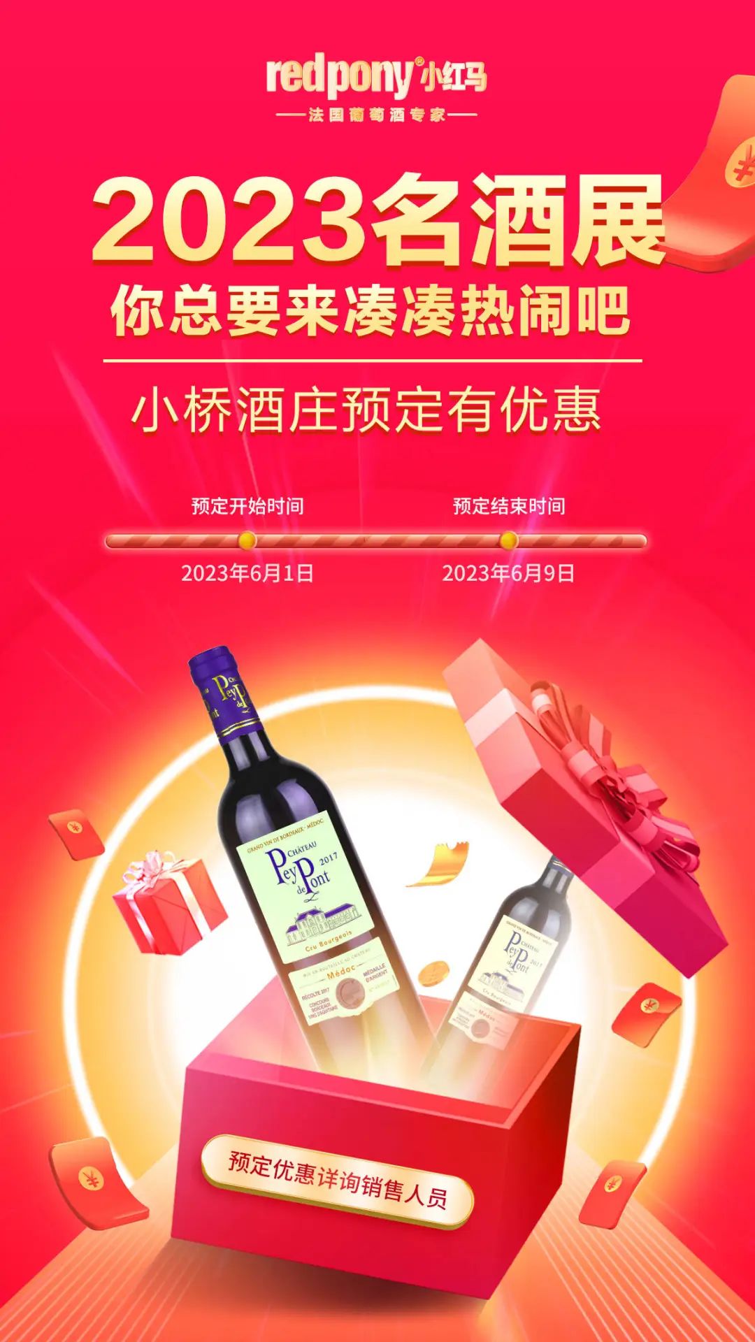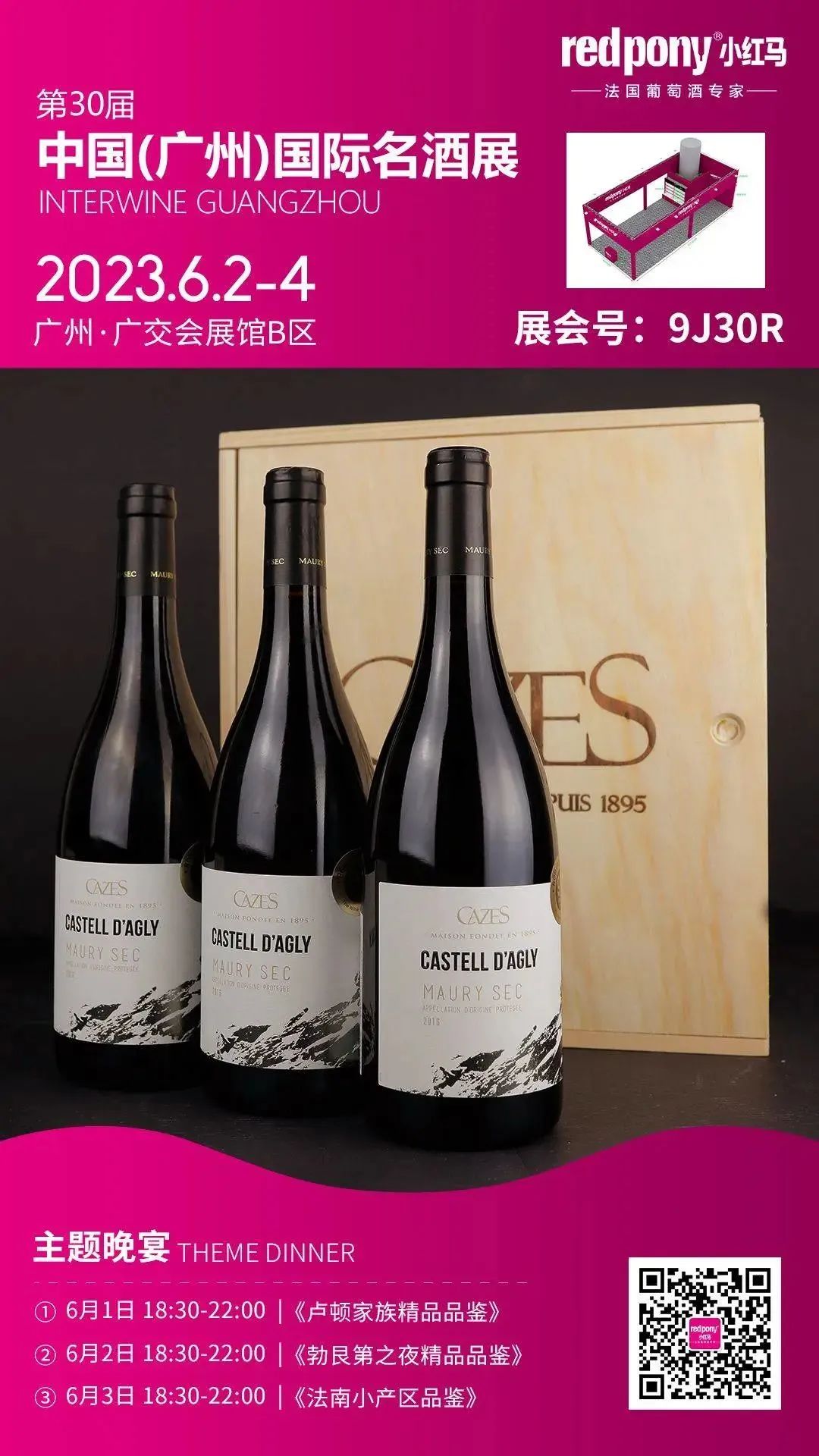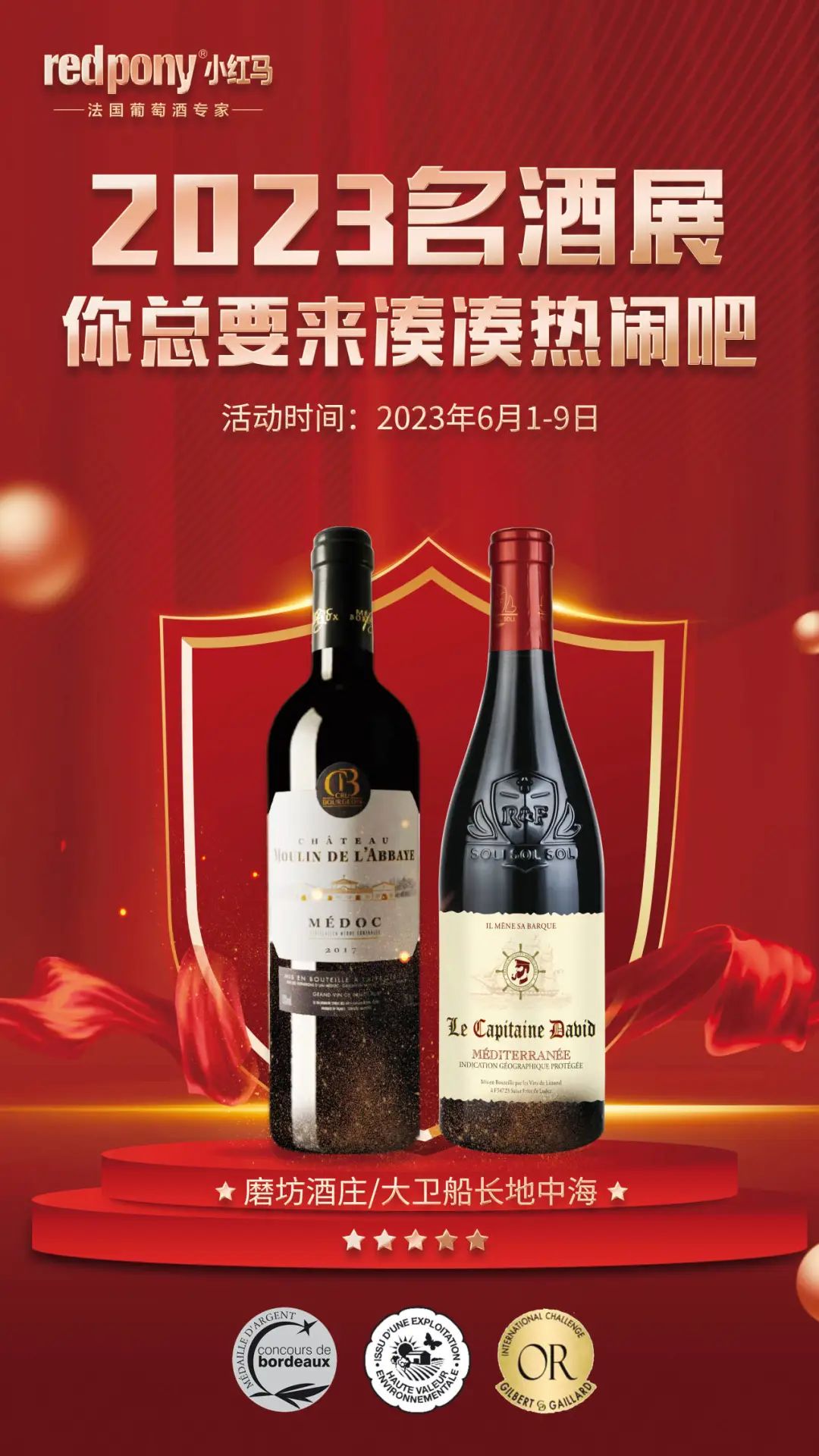 相约广州 2023国际名酒展, 广州小红马在9.2号馆9J30R展位,除了200多款法国葡萄酒,还带来精致的法式美食现场品鉴。这是中秋节前唯一一场大型的专业葡萄酒展,现场优惠力度史无前例,快来为你今年的旺季选品吧。