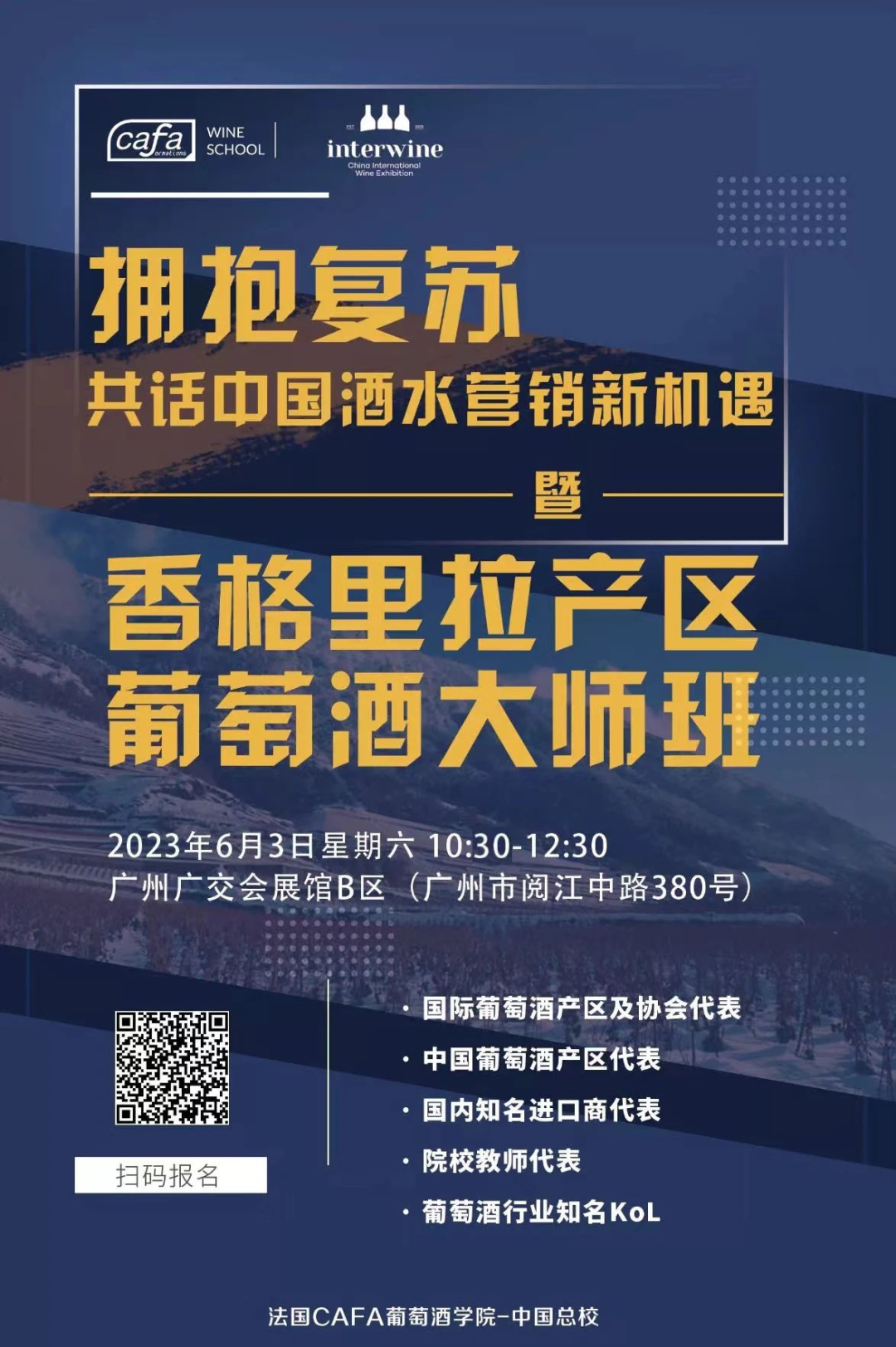 老师将在课堂中以介绍香格里拉葡萄酒产区风土特点为主要内容,介绍产区发展现状,特色酒庄及特色酒款品鉴和侍酒服务带领大家一窥产区的魅力。同时也期待能有更多的人将目光聚焦到香格里拉产区,并有机会能亲临这里感受高原产区的魅力!
