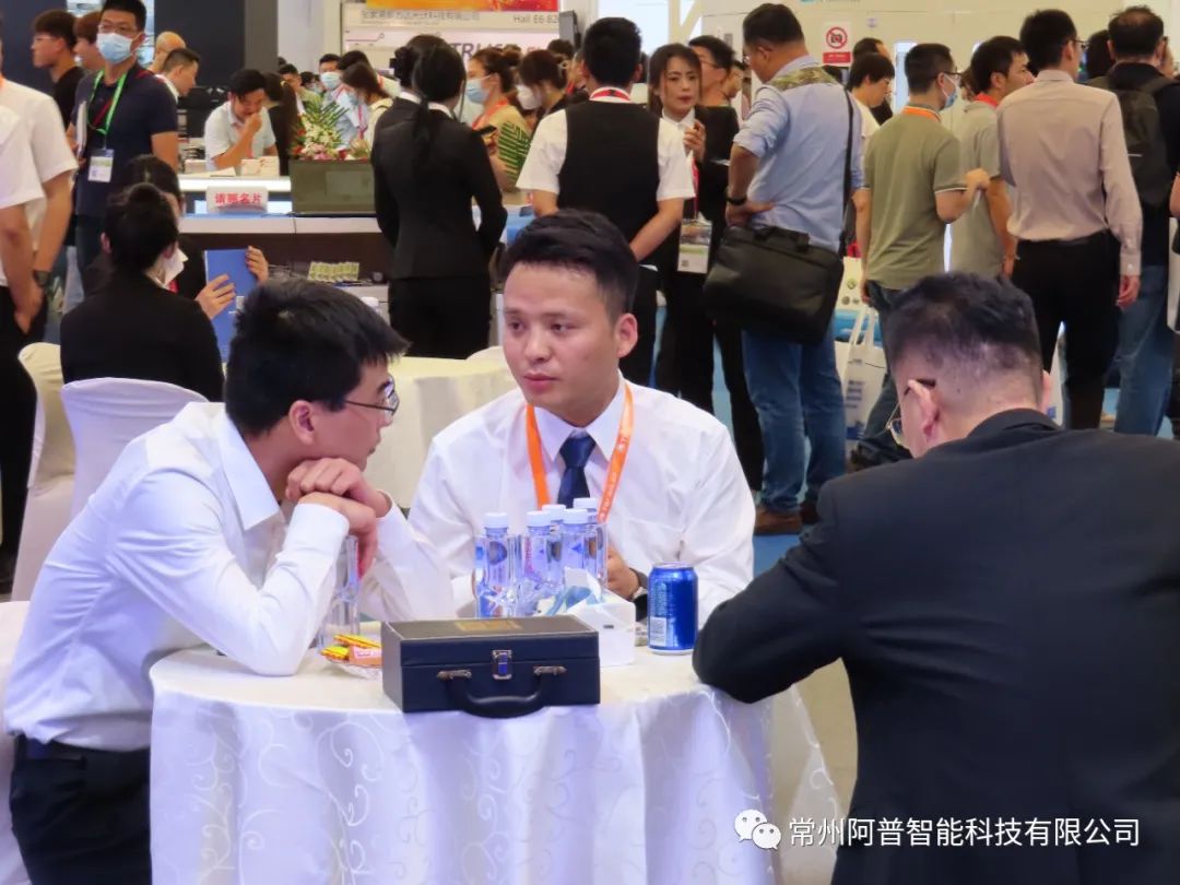 展会期间,阿普智能接待国内外客户150余家,总经理穆亚琦和项目经理任景州同时带队从技术、设备、供应商、老客户等多个方面探讨合作事宜。同时,与多家知名的企业达成战略合作意向,拓宽双方合作的宽度,深入开展光伏设备的技术研发,为实现“技术创新,智能生产”努力奋斗!