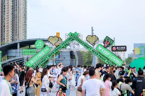 海珠区打造的“1314幸福路”串联起广州塔和琶醍,两地之间的距离恰好1.314公里,通过碧道、有轨电车、游船串联起来,珠啤股份立足“广州塔-琶洲”世界级国际商圈建设,5月20日在广州塔主办的珠江纯生-生啤酒派对,携手代言人萧敬腾并邀请三大乐队,打造一场摇滚音乐派对,吸引近5000人共享音乐盛宴,围绕“520”主题开展互动游戏,同时凭门票到珠江琶醍可参与“CHEERS FUN干杯音约会”的珠江琶醍精美文创、珠江啤酒周边衍生产品等好礼抽奖以及园区商户优惠活动,活动3天园区吸引人流量约8万人次,商户营收较平常周末翻倍。