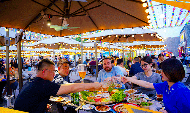 作为网红打卡聚集地,本次雪花硬核啤酒公园的网红空间炸裂焕新,又迎来了一次全面升级。时光隧道、街区花伞、激光秀、风车天灯……当夜幕降临,整个园区在炫酷的灯光下绚烂多姿,喝着新鲜的啤酒,吃着特色美食,别提多惬意了。