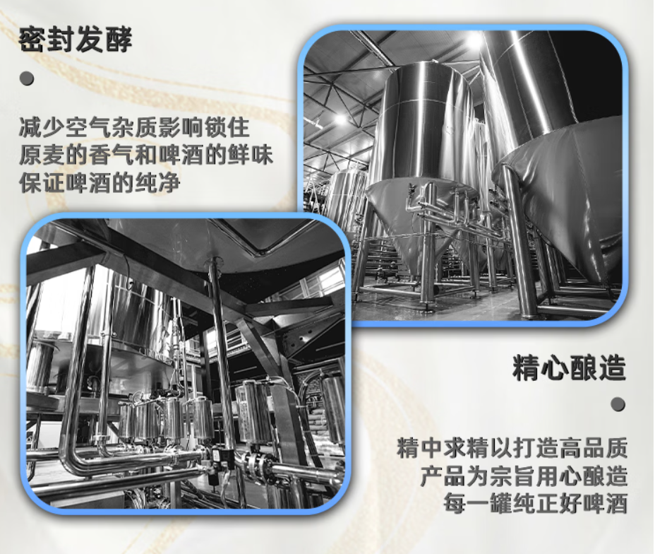 原浆啤酒是直接从发酵罐中分装的嫩啤酒原液。与其他啤酒相比,原浆啤酒在酿造过程中未过滤,不经高温巴氏灭活工序,呈朦胧状原浆的新鲜美味及丰富营养亦被完全的保存下来;低温灌装和贮存(0~5℃),瞬时锁定第一时间的新鲜度,口味鲜美无双,地道纯正。