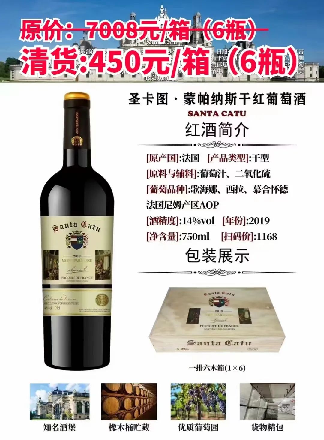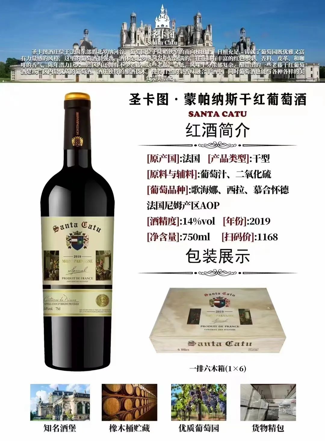 圣卡图·蒙帕纳斯干红葡萄酒(木箱包装,6瓶装):