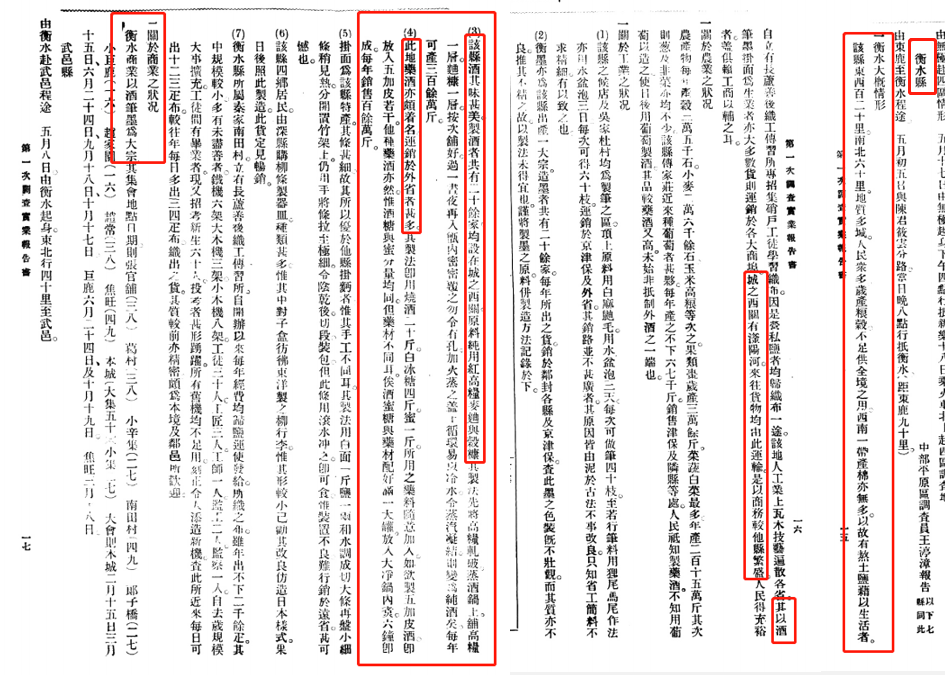 单从数字,也能看出当时直隶酿酒业的繁盛,看出衡水县酿酒业首屈一指的地位。何况,从光绪三十三年(公元1907年)《直隶工艺志初编》的直隶冀州衡水县的“衡酒”,到1911年的直隶省“名酒”,到此次调查的“其味甚美”,衡水老白干不仅产量大,其质量和特色也是其他酿酒作坊所不能企及的。