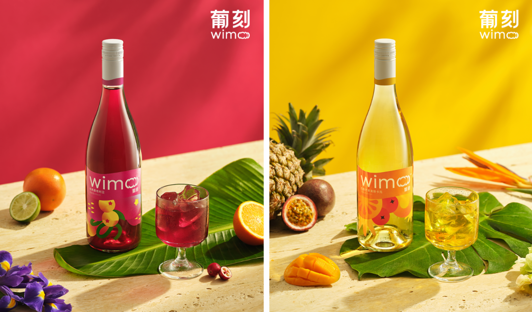wimo葡刻花式葡萄酒系列由酿酒师精心调配,以进口葡萄酒混合天然果汁,不额外添加香精、色素,6度微醺,轻松畅饮,缤纷自在,为用户打造创新的葡萄酒体验。产品包装采用勃艮第型透明玻璃瓶,搭配现代异形酒标,规格750ml。本次上新的花式葡萄酒系列含2个口味,【经典桑格利亚】以赤霞珠为基底搭配柳橙汁、黄桃汁、青柠汁,层次丰富,馥郁甜美;【百香芒果莫斯卡托】以莫斯卡托为基底,搭配百香果汁、芒果汁、菠萝汁,口感清爽,芬芳四溢。