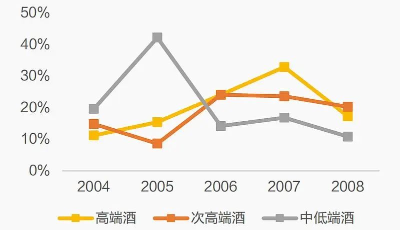 在经济快速增长拉动政商务宴请需求的情况下,高端化的白酒被赋予了面子价值与社交属性,中高档白酒需求旺盛,开始大幅度提价。