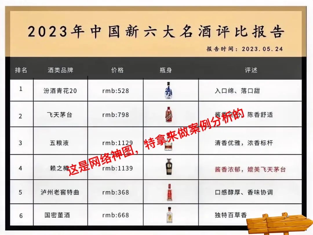 大家来看这张图,标题是《2023年中国新六大名酒评比报告》,日期还很烫手,2023年5月24日,也就是前天。
