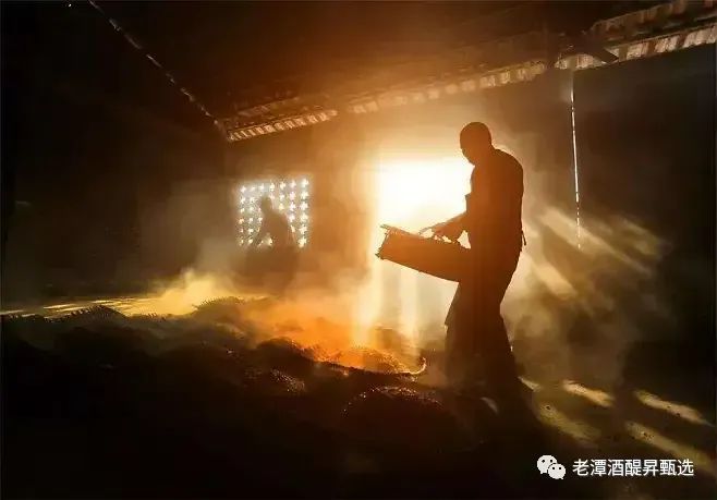 12987工艺中的“8“。意为在老潭酱酒的酿造工艺中,共需八次发酵。每一次蒸煮后,把酒曲铲入窖坑进行封存然后进入“窖期”。从第三轮开始不再投入新的粮食,但是由于原料粉碎或较粗,醅内淀粉含量较高,随着发酵轮次的增加,淀粉会被逐步消耗,直到第八次发酵结束后,醅内的淀粉的含量仍在10%左右。七次取酒