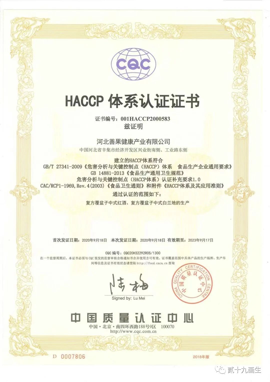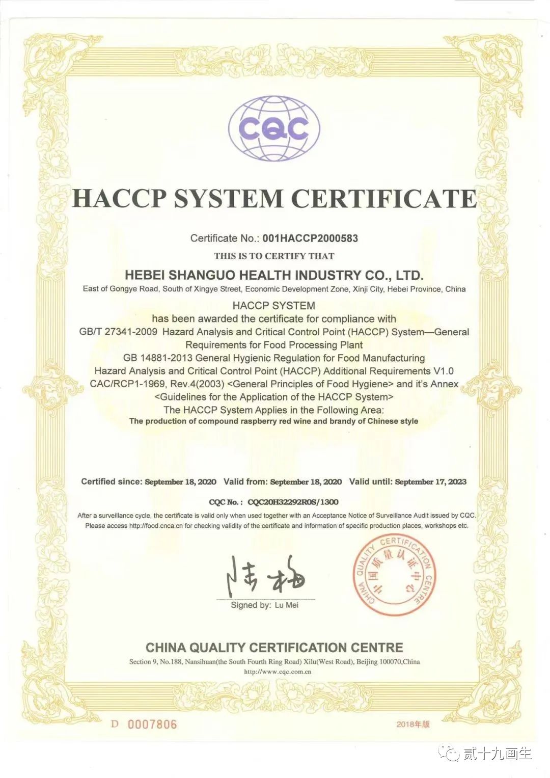酒厂拥有经过国际欧盟认证的HACCP体系认证的密闭生产车间和先进的生产技术和生产设备。