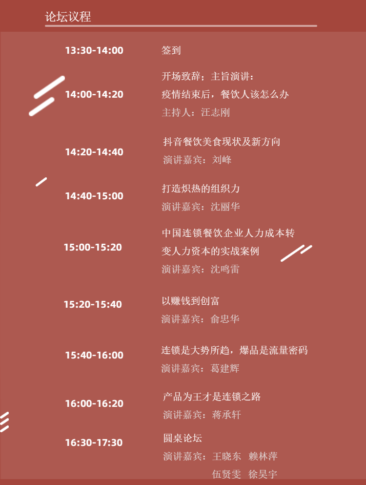那具体到行动上,餐饮品牌们又该如何打造自己的连锁加盟之路呢?餐饮人可以参加我们举办的餐饮交流论坛,或许能找到自己的答案。