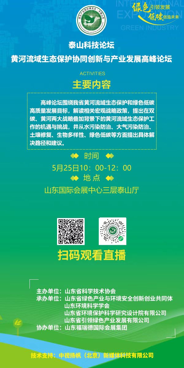 5月25日上午,泰山科技论坛——黄河流域生态保护协同创新与产业发展高峰论坛暨第9届绿色低碳环保产业国际博览会,在山东国际会展中心盛大启幕!