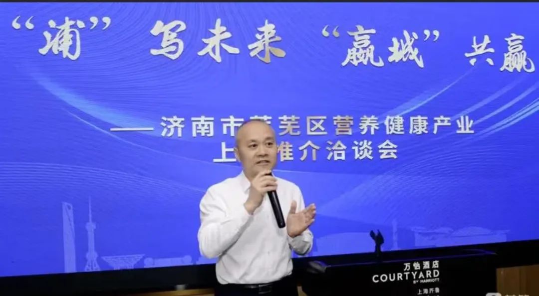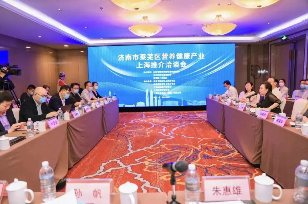 由中共济南市莱芜区委、莱芜区人民政府、山东省营养保健食品行业协会主办,山东省政府驻上海办事处、济南市政府驻上海办事处、上海保健品行业协会、上海中药行业协会、上海齐鲁实业(集团)有限公司协办的济南市莱芜区营养健康产业上海推介洽谈会2023年5月24日在上海成功举行。中共济南市莱芜区委书记焦卫星、山东省驻沪办党委副书记、副主任陈金秀、山东省政府驻上海办事处原党委副书记、副主任薛福民、山东省驻沪办经济联络处处长庄同君、山东省商务厅驻上海商务代表、处长满其伟、济南市政府驻上海办事处科长付浩、莱芜区委常委、区委办公室主任弭学峰、莱芜区副区长张立军、莱芜高新区党工委委员、管委会副主任薛寒冰、非洲科学院院士、同济大学环境科学与工程学院教授、博士生导师李风亭、上海长海医院战创伤急救中心执行主任兼创伤骨科主任许硕贵、复旦大学药学院党委书记王建新、复旦大学山东研究院常务副院长孔彪、岳阳医院微创医疗教授刘玉金、上海保健品行业协会秘书长朱惠雄、上海保健品行业协会名誉会长陈保华、上海中药行业协会秘书长孙帆、山东省营养保健食品行业协会常务副会长、秘书长赵秋云等领导与嘉宾出席,参加推介洽谈会的还有莱芜区卫生健康局、莱芜区投资促进局、莱芜高新区投资促进部、上海市相关高校科研院所及上海山东营养健康企业负责人。