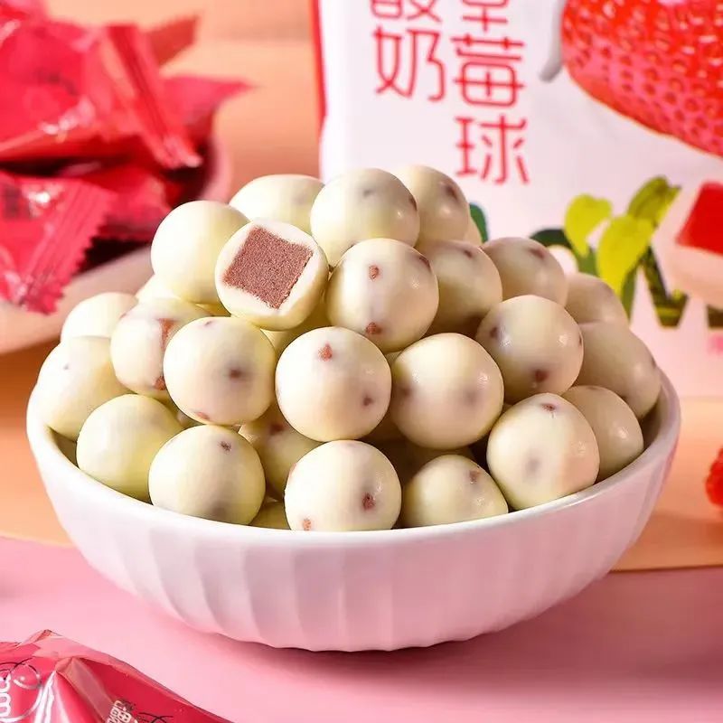 产品介绍:夹心酸奶球,两种口味,酸甜好滋味,每一颗都是独立包装。