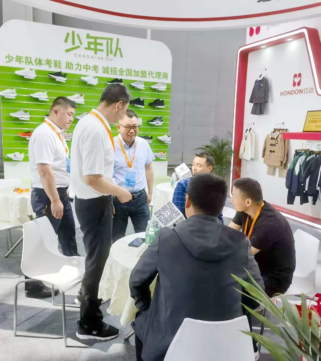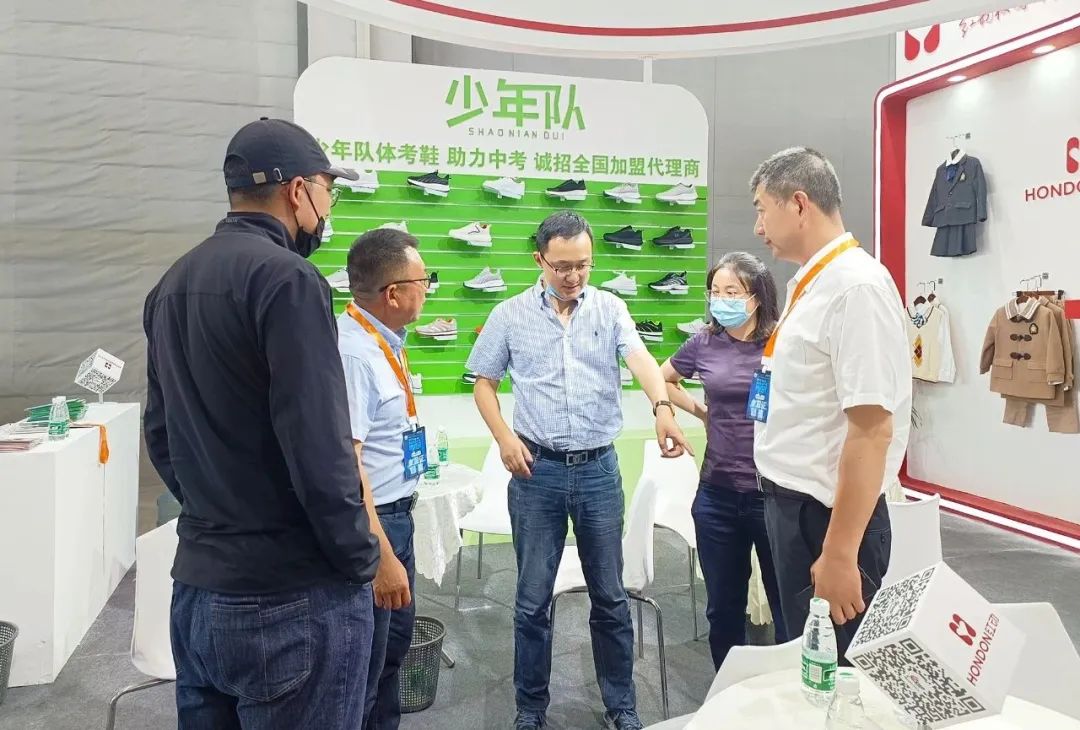 红动展位现场,人气火爆,参观客商纷纷驻足参观,现场的工作人员热情接待并提供专业的讲解和服务,参观者对红动产品和少年队校鞋展现出了浓厚的兴趣,并表达了合作意向。