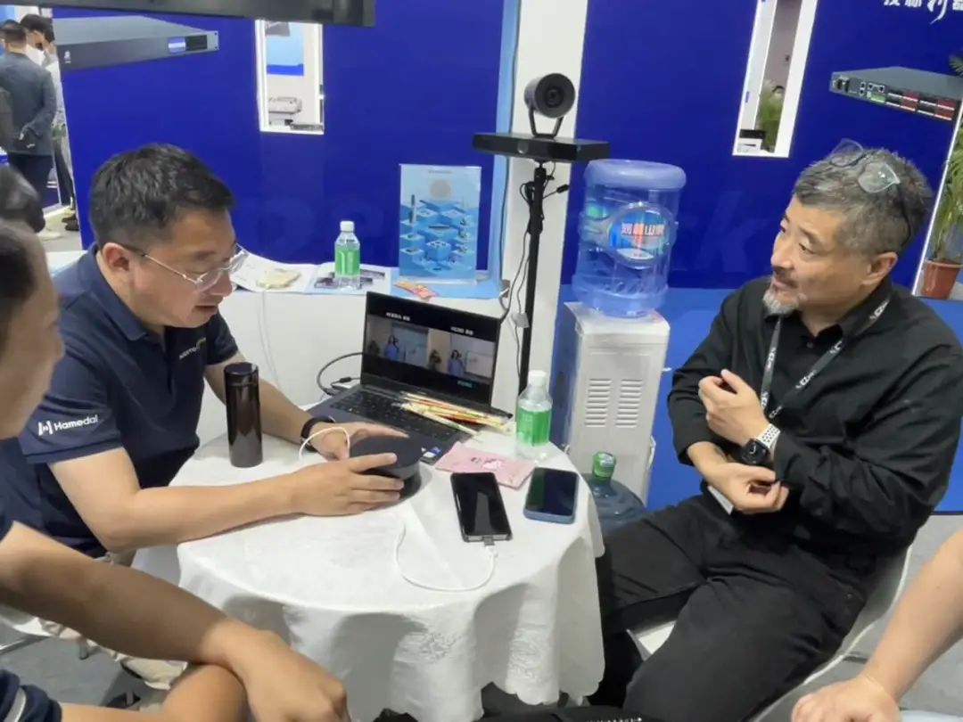 耳目达现场搭建无感拾音麦克风会议体验间吸引了众多国内外客户前来参观体验。A50阵列麦克风在现场清晰拾音的精益表现,给在场用户带来高品质现场体验。