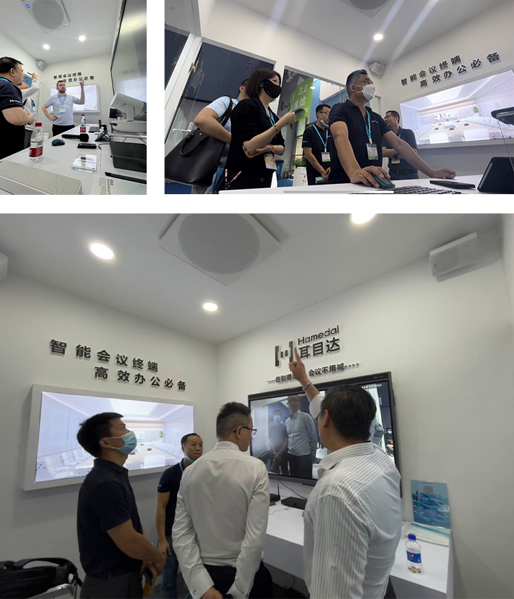 此次展会,耳目达提供了大、中、小三种会议空间解决方案,并现场搭建会议室体验区,真实还原会议场景,供展会观众真实体验感受会议视听效果: