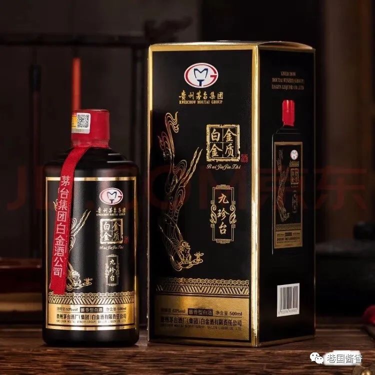白金金质酒九珍台53度酱香型白酒,由贵州茅台集团白金酒公司出品,产品等级:优级,产于中国贵州省仁怀市茅台镇,以水、本地高粱、小麦为原料,利用自然环境,采用科学的传统工艺,精心酿制而成,发酵时,糟醅采取原出原入,达到以醅养窖和以窖养醅的作用,至少贮存3~5年的时间方准装瓶出厂,2次投料、8次发酵、7次取酒等30多道工序。酒质晶莹剔透呈线状,挂杯明显,酒花丰盈,均匀晶亮,具有酱香突出,醇厚惬意,芬芳四溢,耐久回味,空杯留香持久的典型风格。黑金轻奢礼盒,瓶身烫金工艺,配有纤细纹理,是品鉴、收藏、送礼佳品。