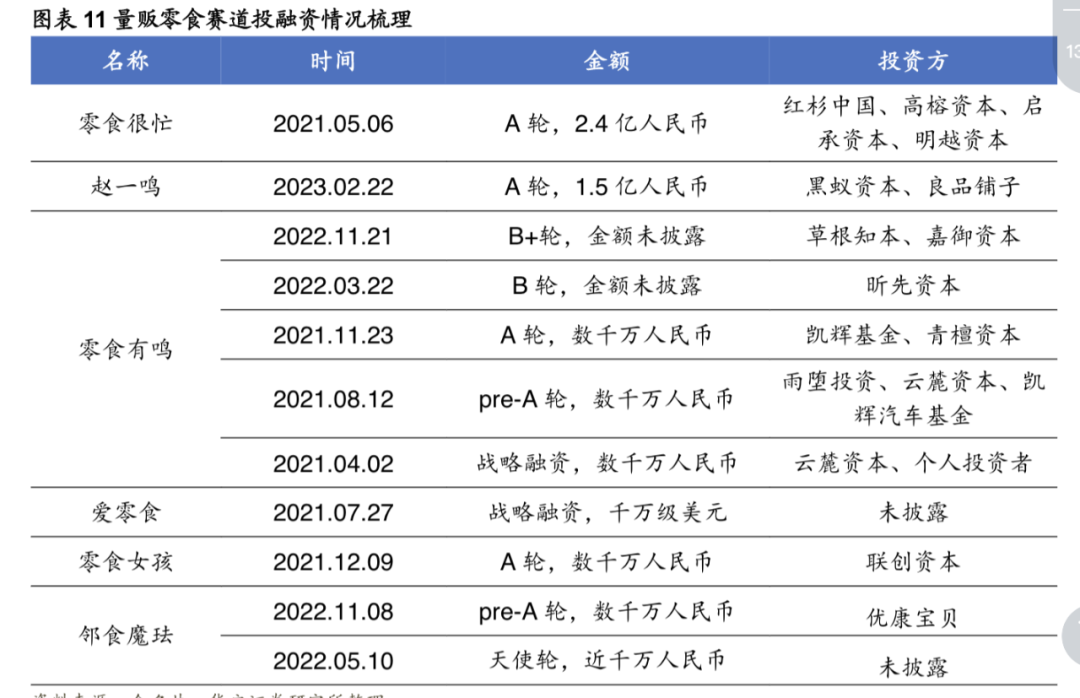资本加持。极快的扩张速度外加强区域性,成功吸引了资本注意。2021年至今,零食很忙、零食优选、爱零食等多家拿到投资,最新的赵一鸣于今年2月完成1.5亿A轮融资,由黑蚁资本领投、良品铺子跟投。