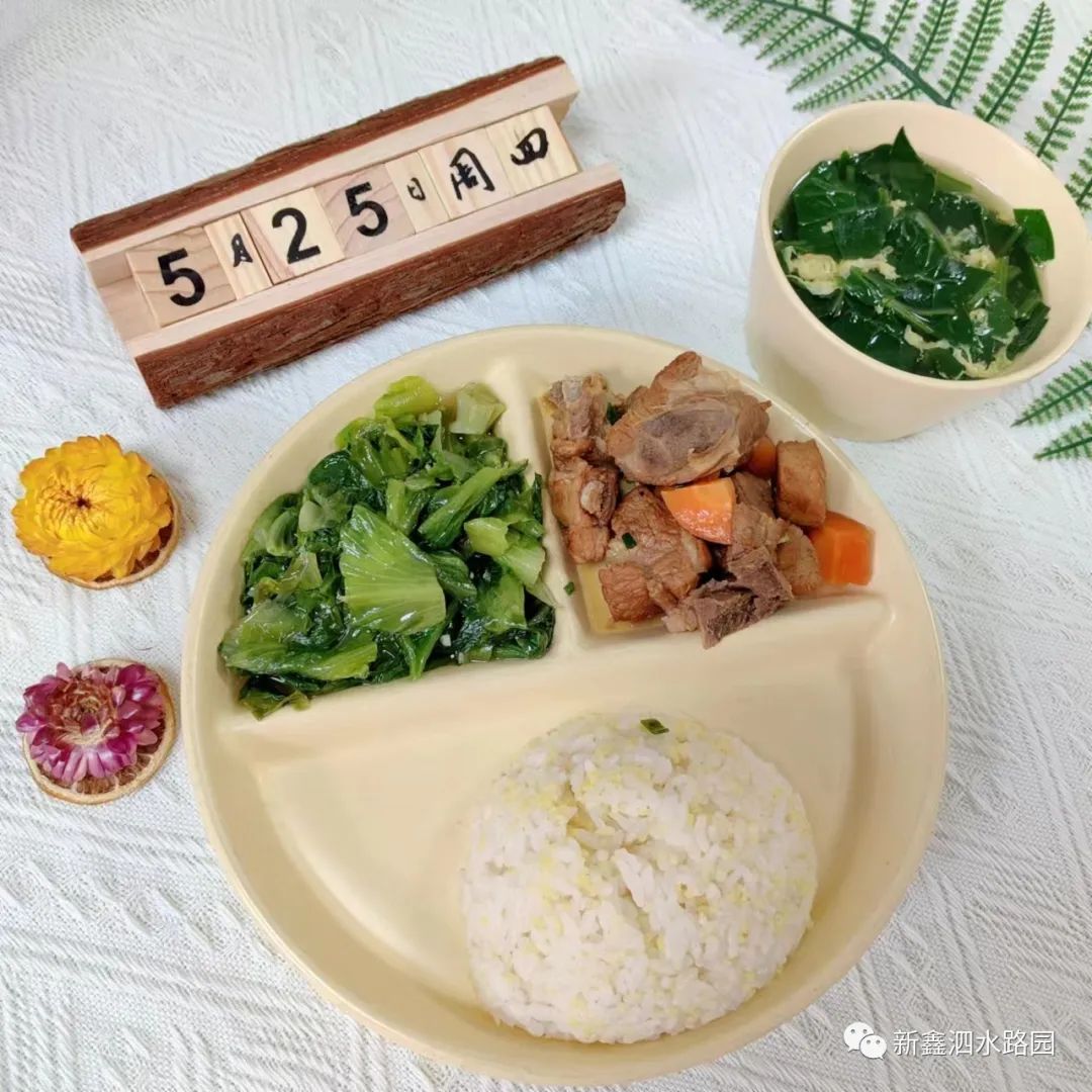 黄金米饭 红烧排骨 蚝油生菜 菠菜鸡蛋汤