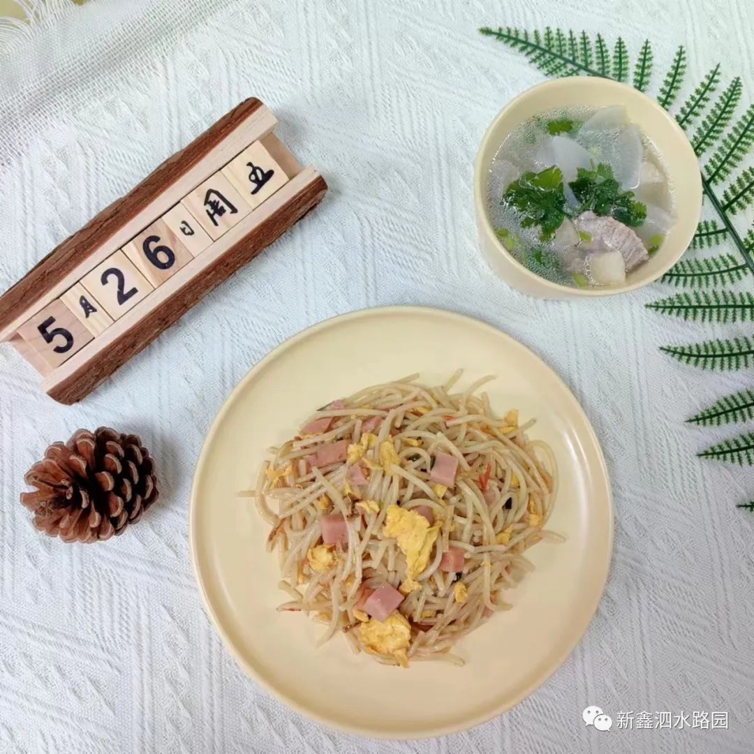 香米饭 珍珠肉圆 蒜薹炒鸡蛋 鲜蔬芙蓉汤