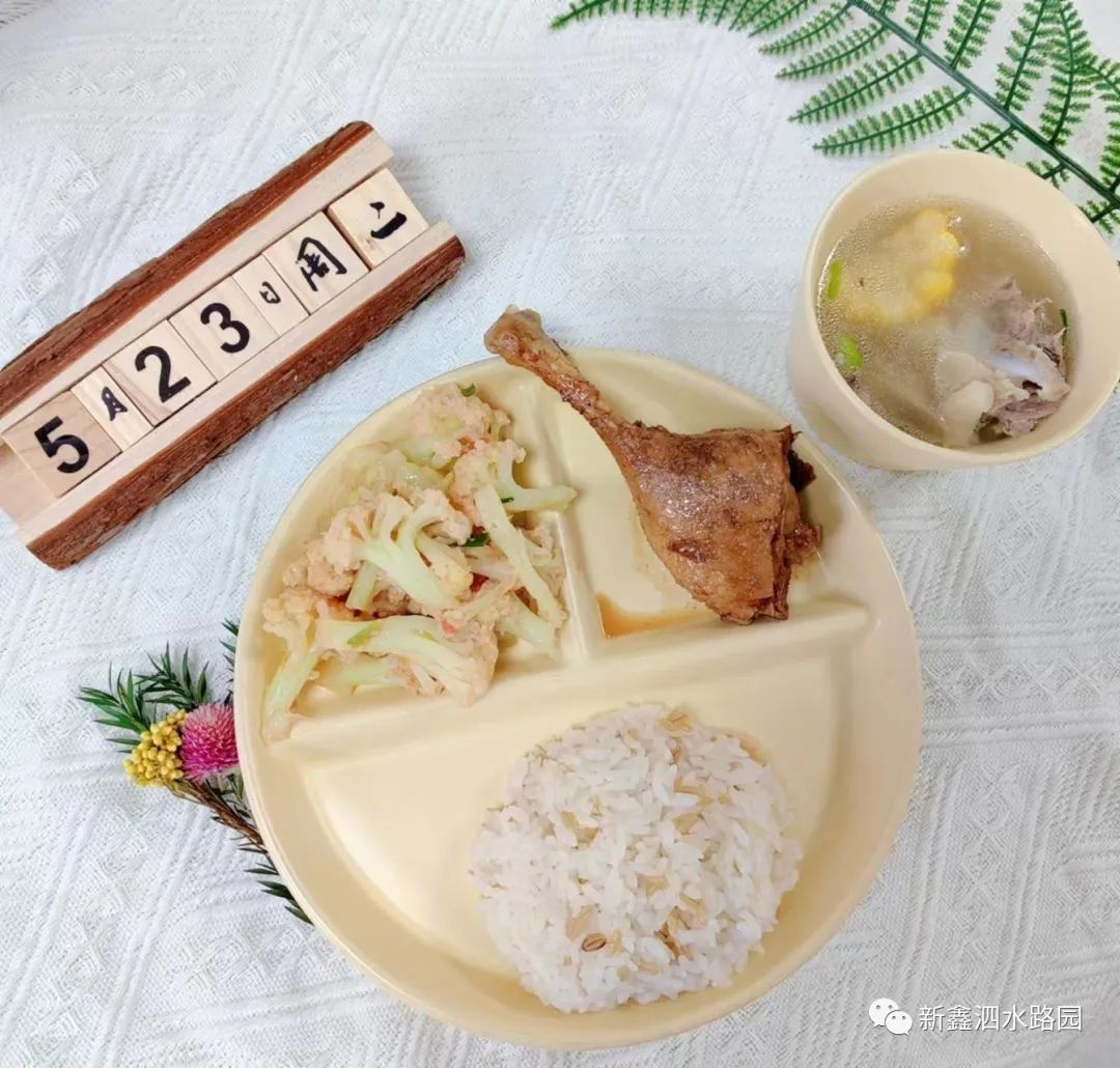 燕麦米饭 自制卤鸭腿 小炒菜花 玉米大骨汤