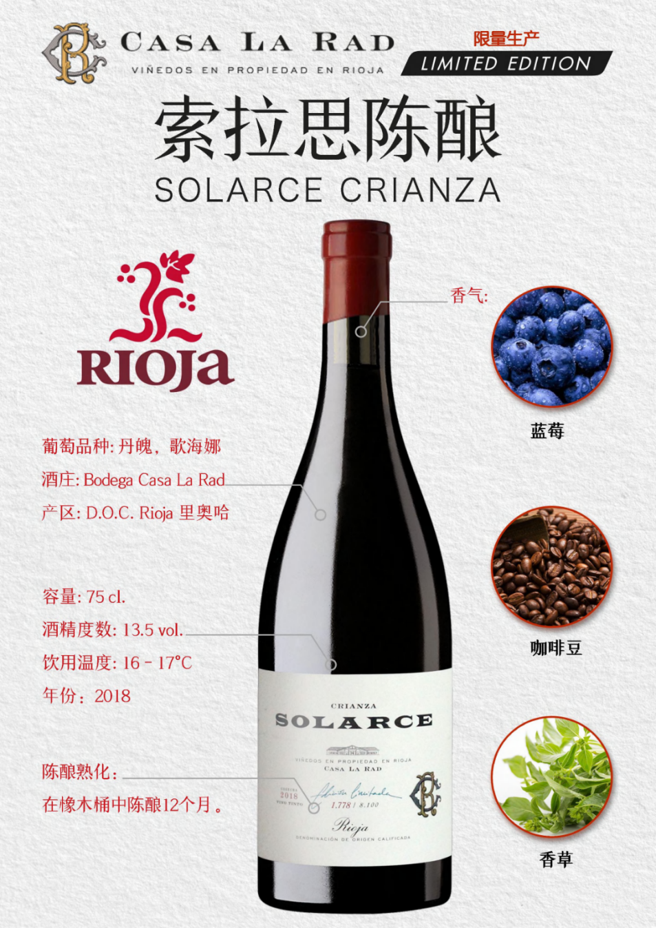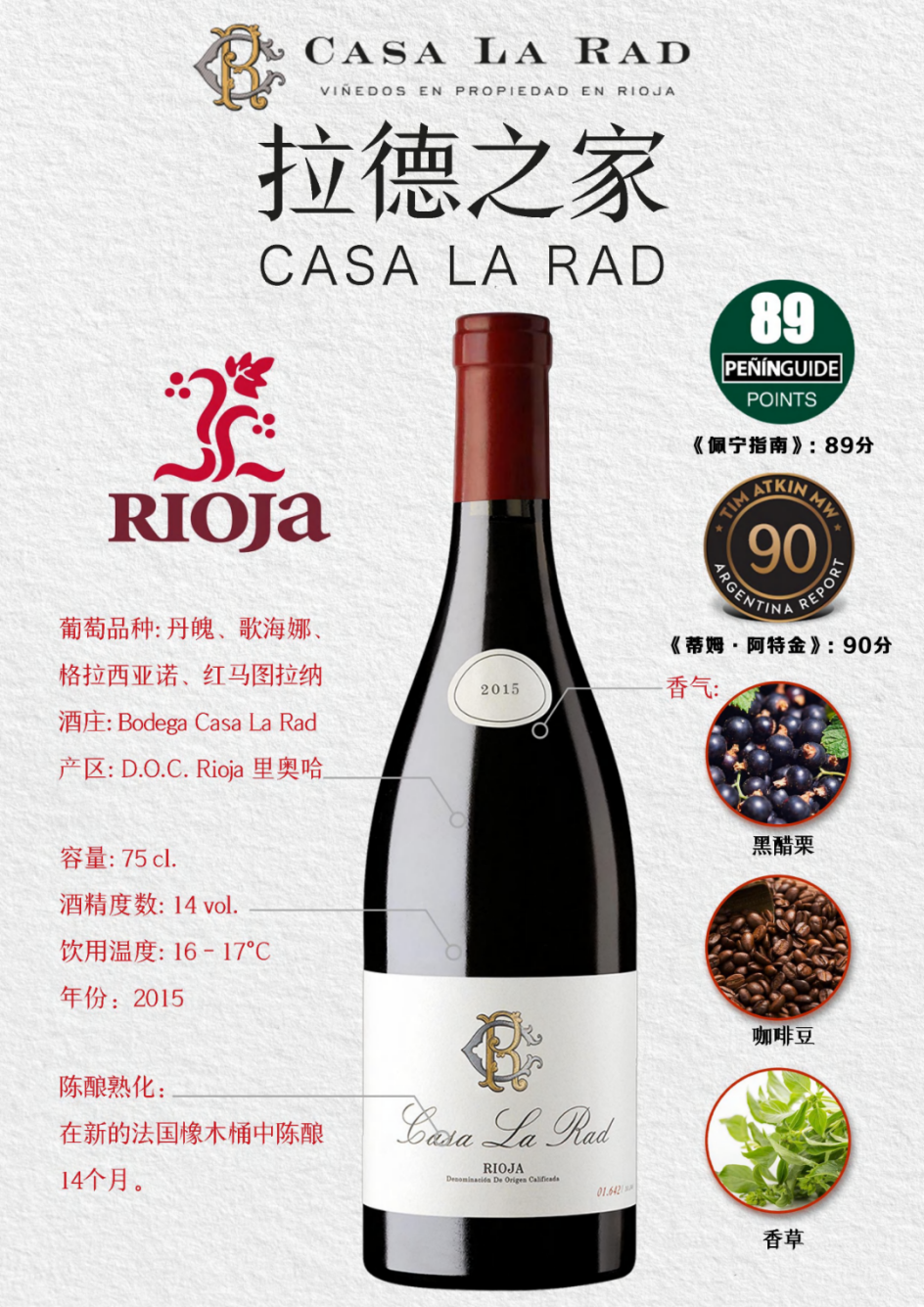 Casa la Rad 酒庄坐落在东里奥哈的 AUSEJO(奥赛霍)。整个庄园占地800公顷,其中550公顷是林地和山腰,110公顷是葡萄园,15公顷橄榄树,其余的用于种植谷物和杏仁树。广阔的占地面积,使其展现出高度的生物多样性,是独一无二的。