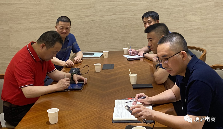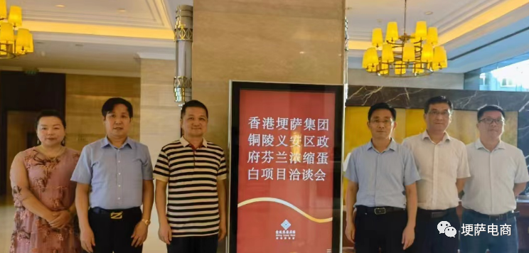 埂萨集团董事长吴田平(左3)与铜陵市义安区孔区长(右3)洽谈项目投资选址