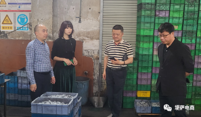 埂萨控股集团董事长吴田平(右2)主持阜新高新区副主任黄湃(左2)、阜新高新控股集团董事长吴烈(右1)参观宁波企业,洽谈项目投资选址