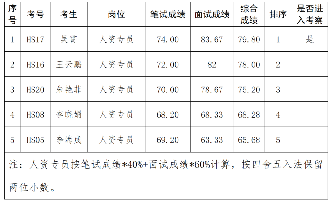 关于航食公司人资专员公开招聘考试综合成绩和拟进入考察人员名单的公示