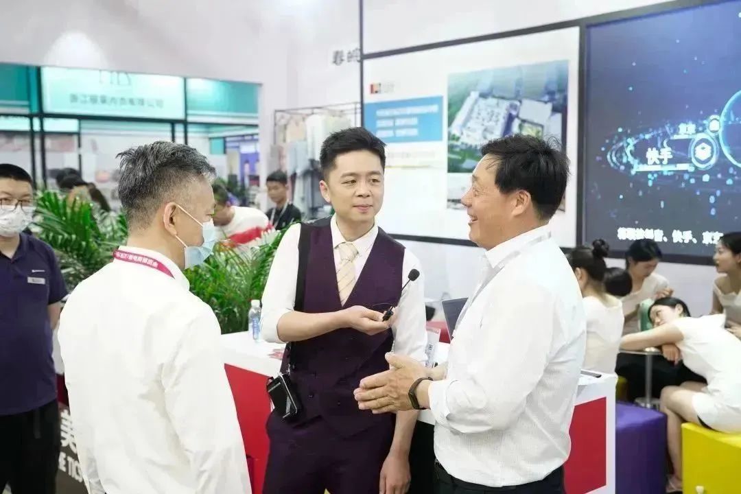 展会现场互动频繁,贸易洽谈比比皆是,涵盖私域百强团长、社群平台、私域团队长、抖音/快手精选联盟团长、抖音/快手/淘宝主播选品团队等带货渠道,帮助企业做销售增量,面对面洽谈,一对一推品。临沂头部主播超级丹、徐小米、陶子家等选品团队悉数到场,现场对接。展会同步开启“让好物上链接”现场直播,超级丹、陈州等众多直播间人气节节升高!