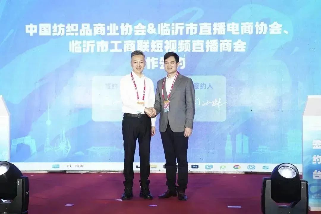 开幕式上,中国纺织品商业协会与临沂市直播电商协会、临淄区商务局与山东广播电视台生活农科管理运营中心,各主播与品牌商达成战略合作,依次进行现场签约。