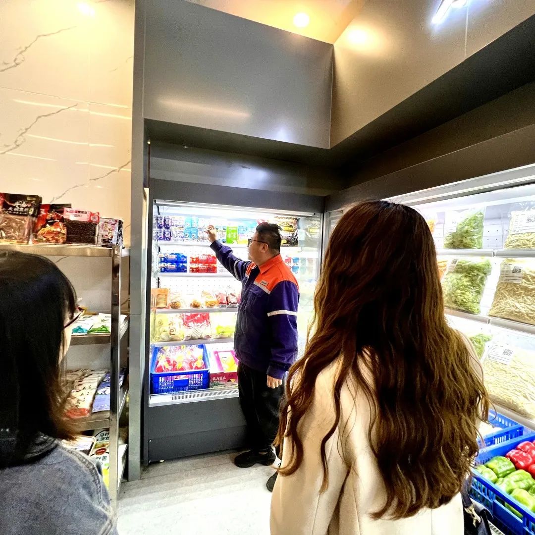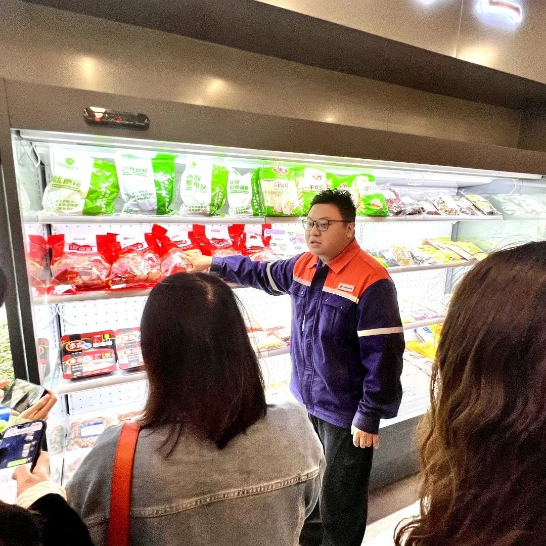 随后,大家来到了食材样品展示区。加工处理好的食材整齐地摆放在冷藏柜中,蔬菜、水果、肉类、奶制品新鲜干净,点心、佐料种类繁多、井然有序,这展现了公司专业的管理和严格的质量把控。盛经理详细介绍了孩子们在学校里吃的蔬菜、点心、米面、肉品等,让家长对孩子们的饮食有了更深入的了解。