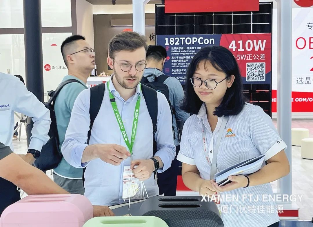而在现场,伏特佳能源工作人员也耐心地向观众介绍了其在光伏领域的产品、技术优势以及未来发展规划,吸引了许多观众前来咨询和参观。