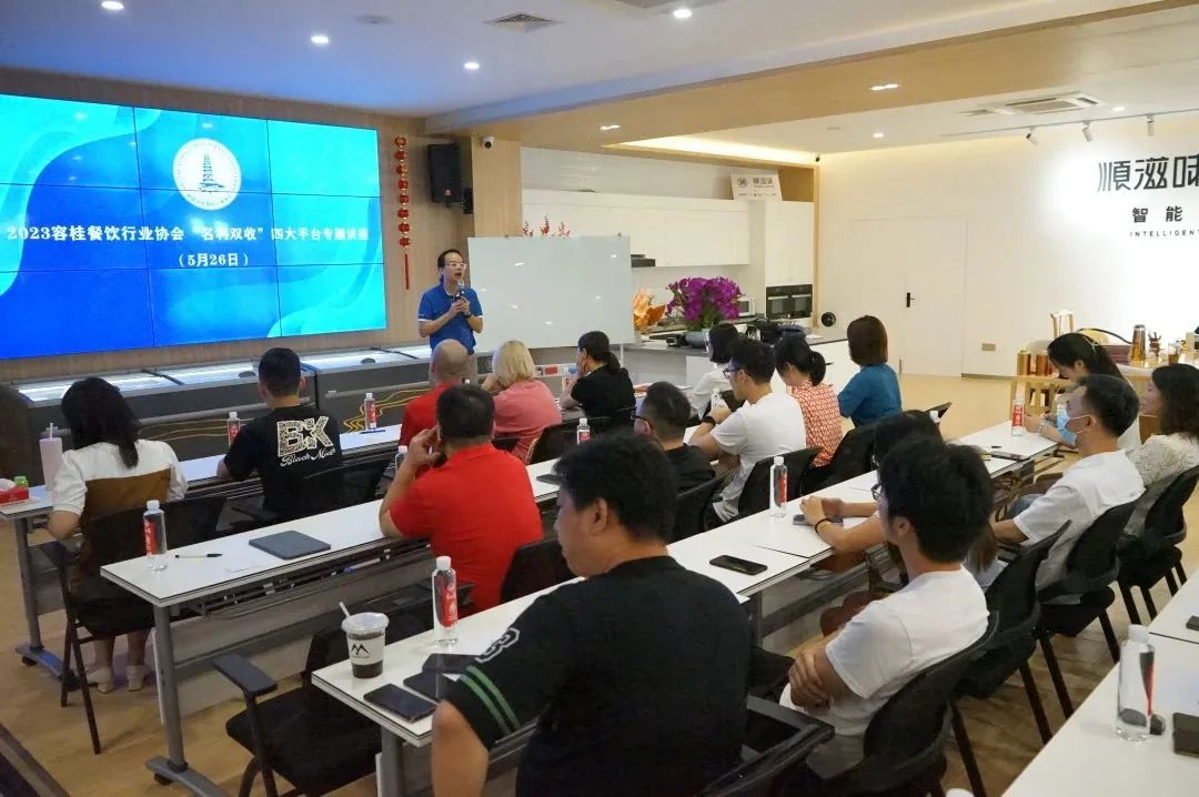 5月26日, 顺德容桂餐饮行业协会举办“名利双收”四大平台,新媒体专题讲座,目的是让各大餐饮企业能合理运用多线上平台,增强企业的运营能力,这次专题讲座协会约50多家餐饮企业单位参与。