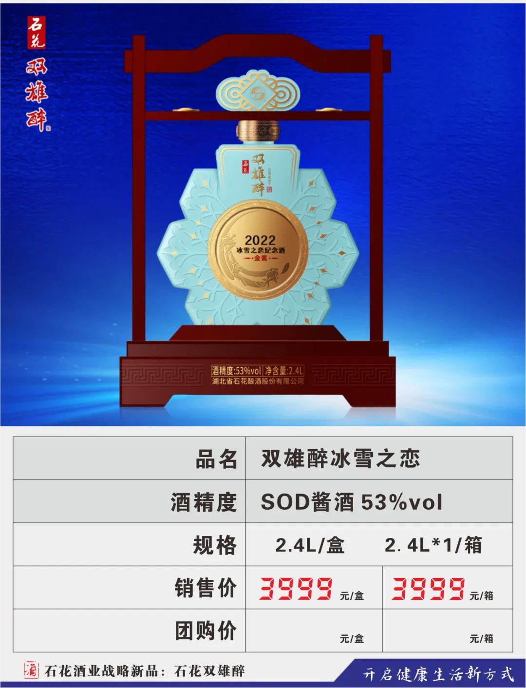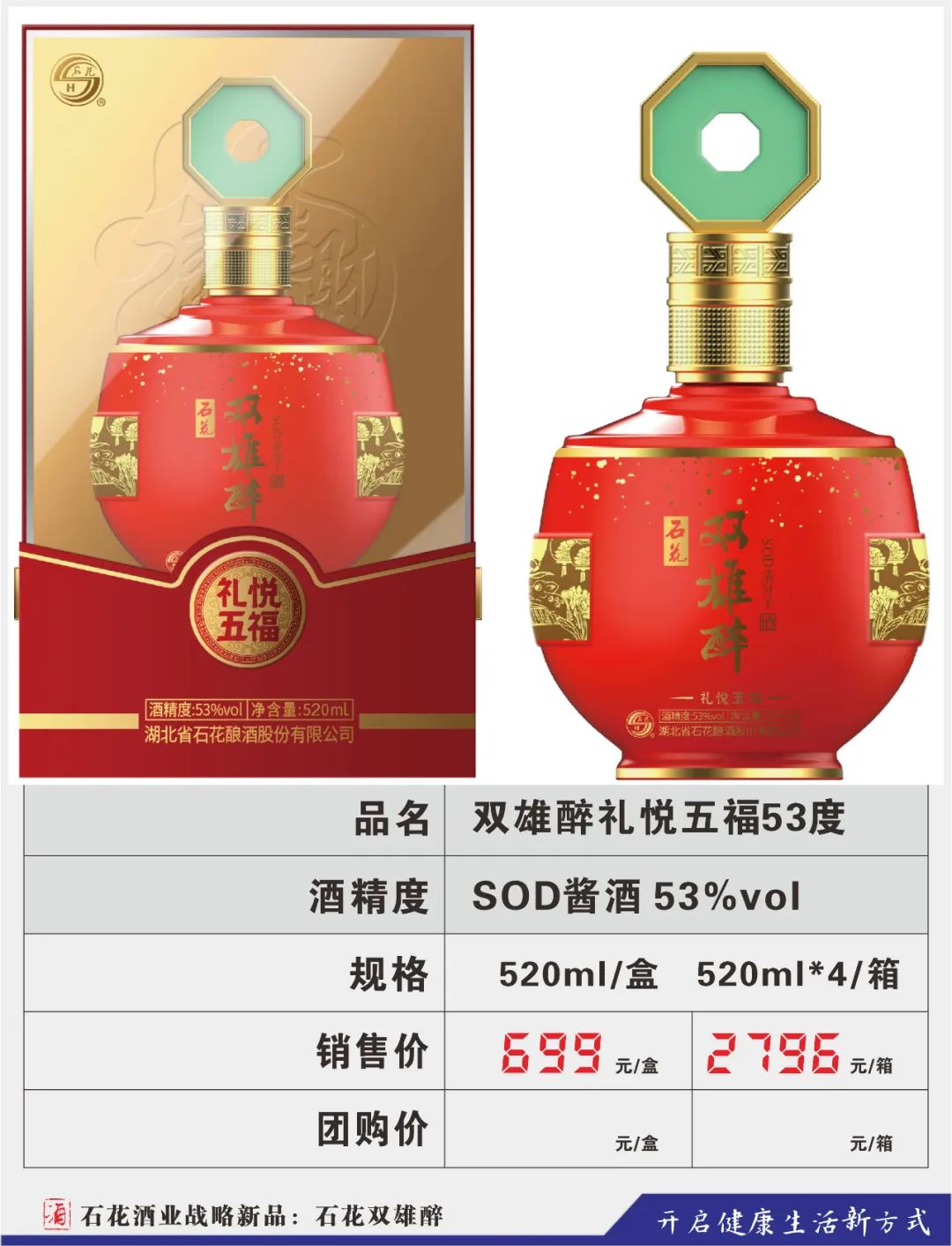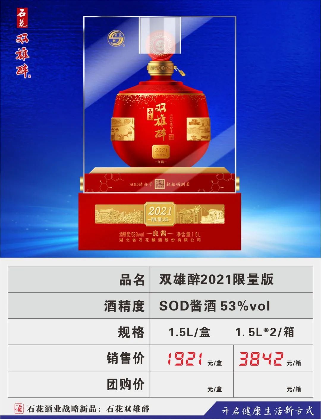 湖北双雄醉健康酒业有限公司成立于2019年,为石花酒业子公司,独立运营双雄醉品牌,本着为人民健康饮酒、饮健康酒而请命的初心,将双雄醉培育成生态的、健康的、高尚的、可与霸王醉媲美的又一旗帜产品,打造成为支撑石花酒业未来发展的核心品牌,双雄醉健康酒业承载着新的使命,再出发、再奋斗、再跨越!