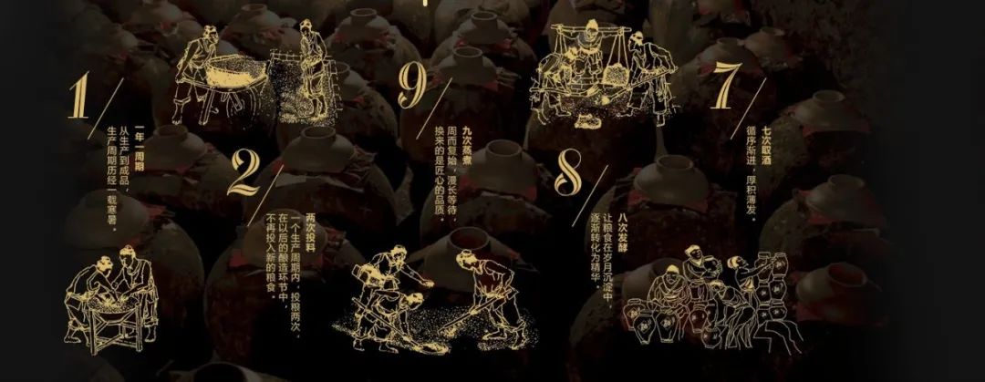 “9”:九次蒸煮,酱香型白酒的酿造工艺中,原料前后总共需要经过9次蒸煮,每次蒸煮完后都要再次加入酒曲进行发酵,直到最后的蒸馏取酒。