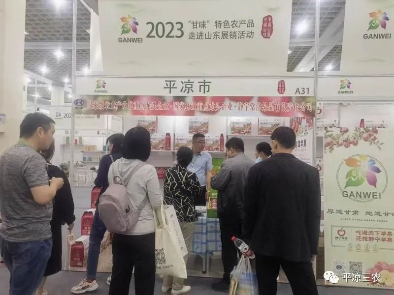 平凉市农业农村局组织甘肃德美地缘现代农业集团有限公司、静宁常津果品有限责任公司、庄浪县鑫喜淀粉加工有限责任公司、平凉市陇原香粮油有限责任公司等多个“甘味”品牌企业参展,集中展示展销“静宁苹果”、“平凉红牛”、“庄浪马铃薯”等平凉特色农产品30余种。我市参展的农产品品质优良,物美价廉,深受现场嘉宾高度赞誉和充分肯定,吸引了济南及周边县市的广大消费者纷纷前来采购,有效提升了平凉特色高端“甘味”农产品品牌知名度和市场影响力。
