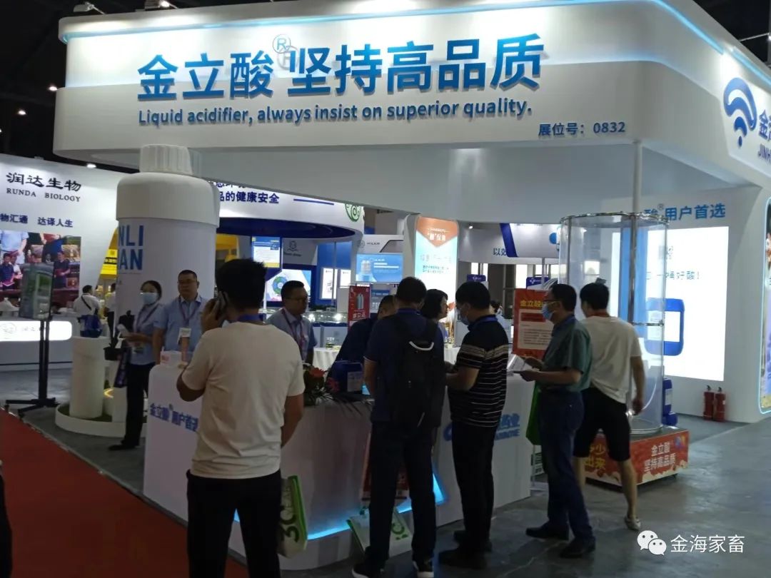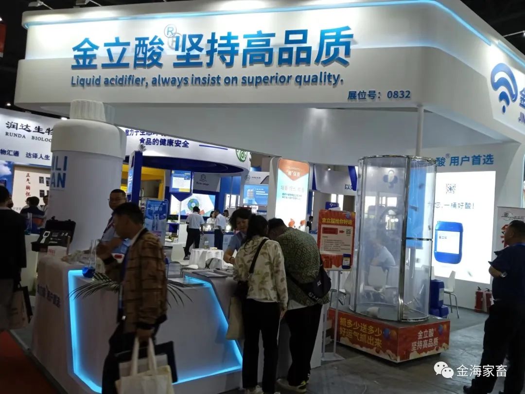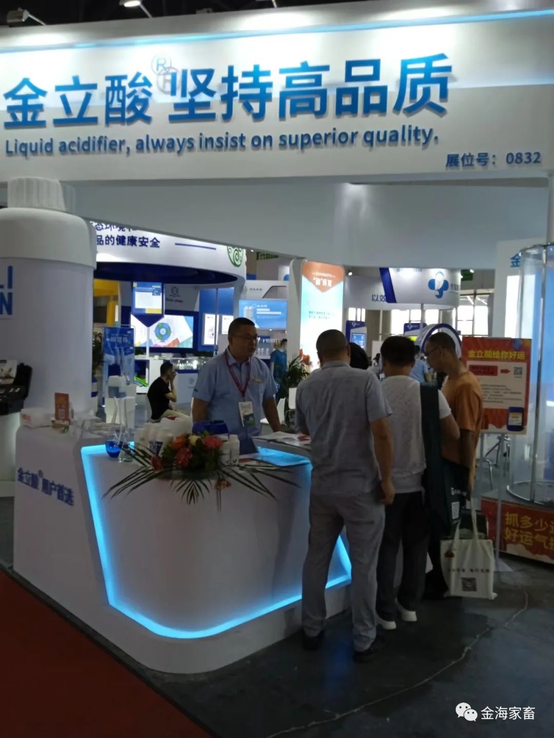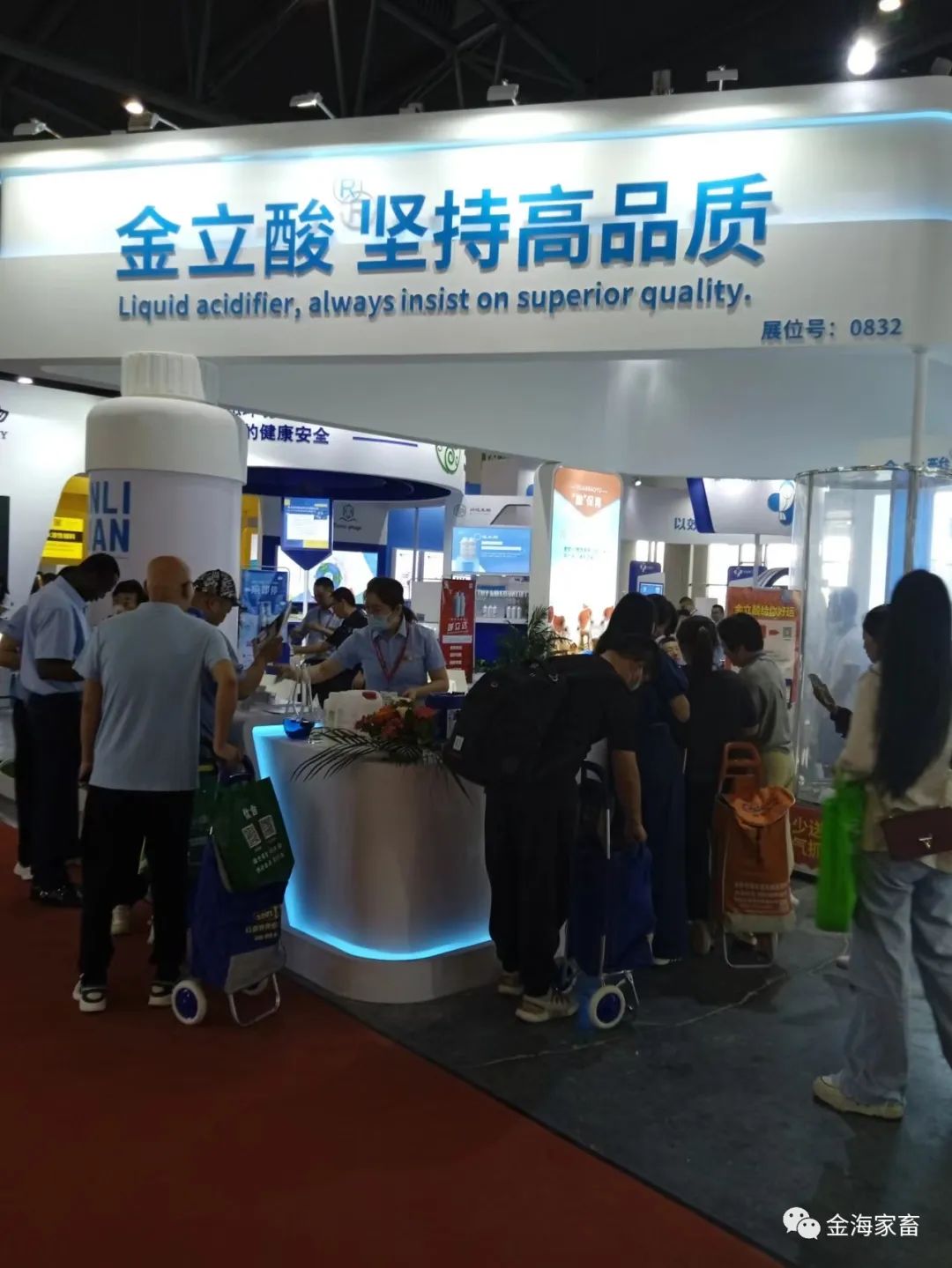 本届畜博会是有史以来全产业链超大型国际畜牧专业盛会,展览面积高达21万平方米,聚集了来自国内外畜牧业1500余家参展商,创历史之最!金海药业(金立酸,新一代饮水型酸化剂)作为无抗养殖的倡导者和践行者,应邀出席了本次盛会。