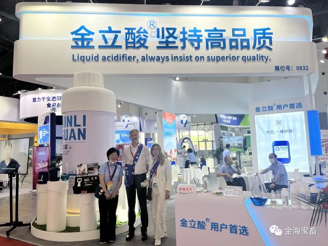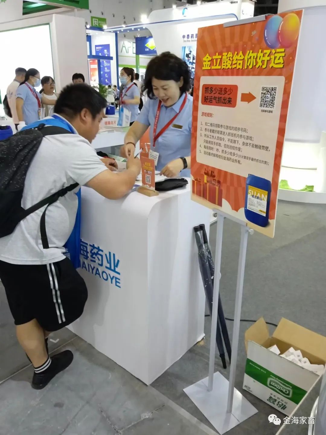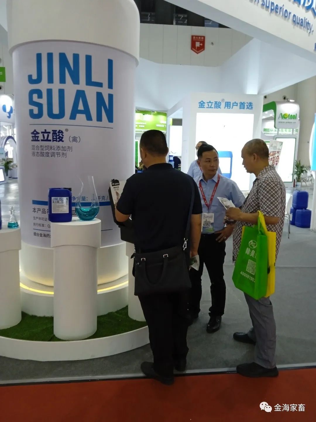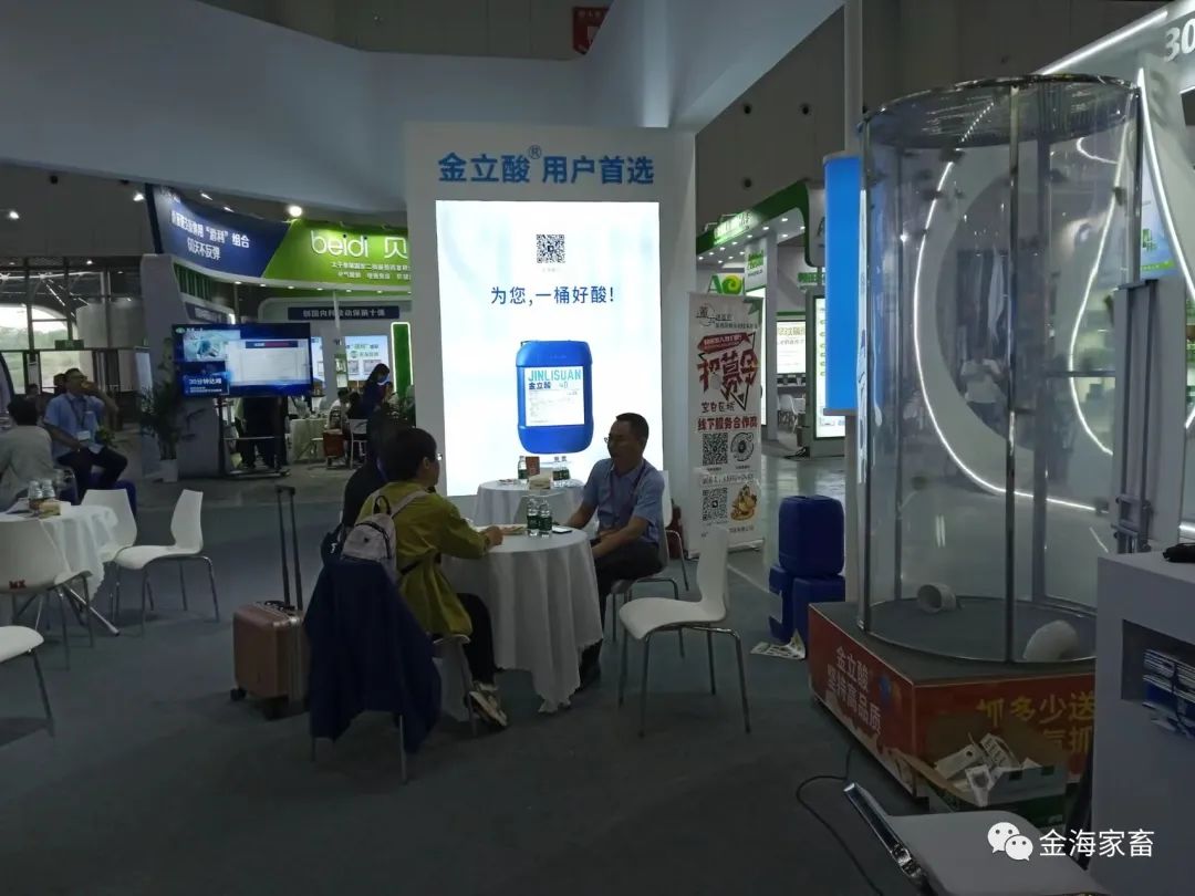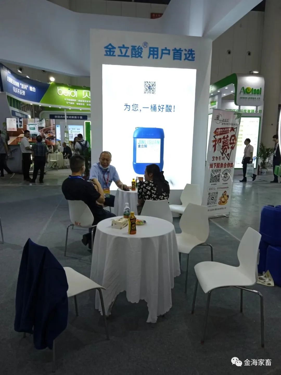 本届畜博会是有史以来全产业链超大型国际畜牧专业盛会,展览面积高达21万平方米,聚集了来自国内外畜牧业1500余家参展商,创历史之最!金海药业(金立酸,新一代饮水型酸化剂)作为无抗养殖的倡导者和践行者,应邀出席了本次盛会。