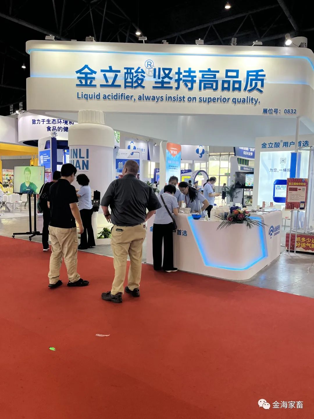 金海药业深耕畜牧行业,始终坚持“让用户喜爱”核心价值观,在这场品牌云集的行业盛会中,金海药业携金立酸、蓝立酸系列产品亮相盛会,大放异彩,备受瞩目,让观展者充分了解到了“饮水更洁净、肠道更健康”的理念,从养殖源头减少养殖动物的发病!