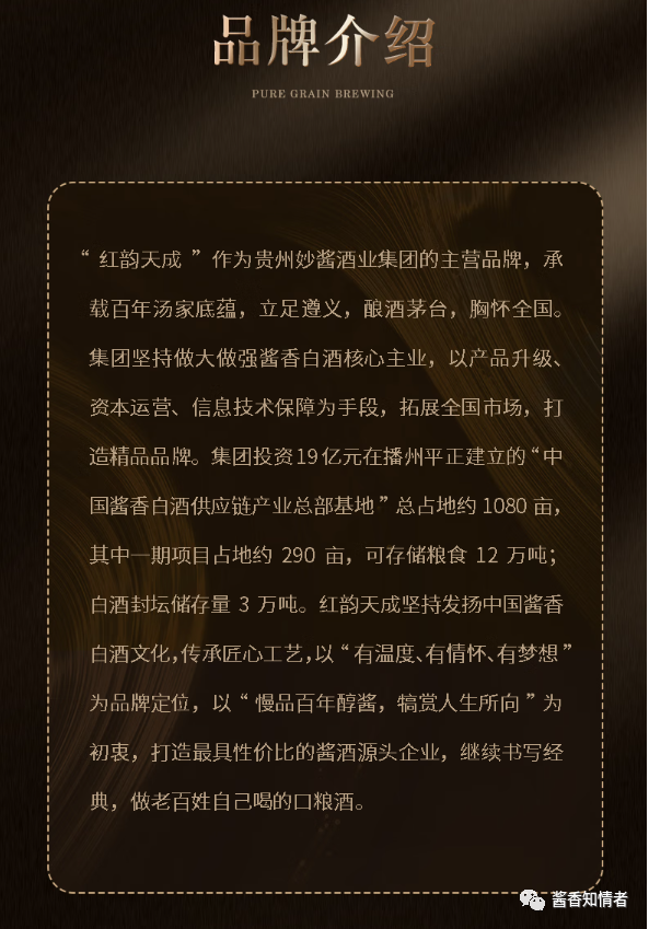 贵州红韵天成酒业有限公司始终秉承着中国传统白酒的技艺精华,坚守纯酿固态发酵工艺,坚持“以诚为信、以质取胜、锐意创新、追求卓越”的质量方针,致力达成“真实”、“源产”、“美好”的理念,以传承红色精神,红色韵味为己任,在日益发展的社会中砥砺前行。